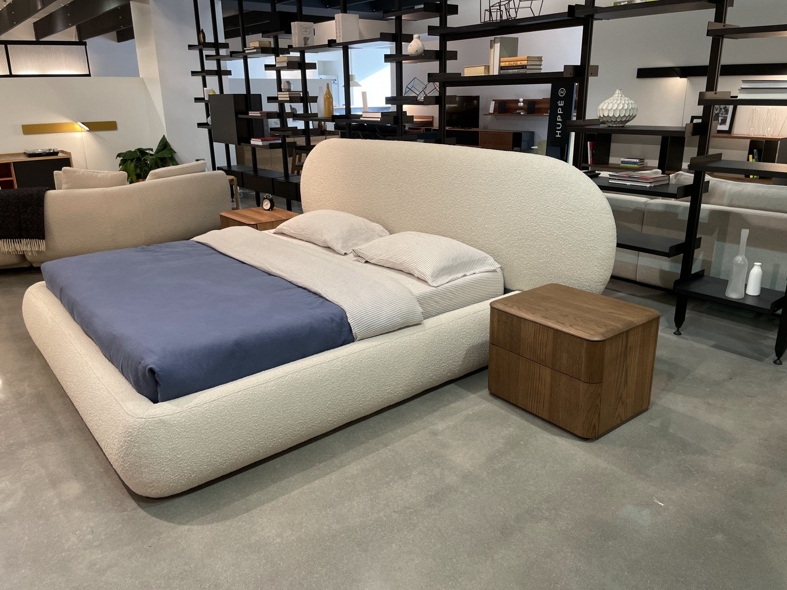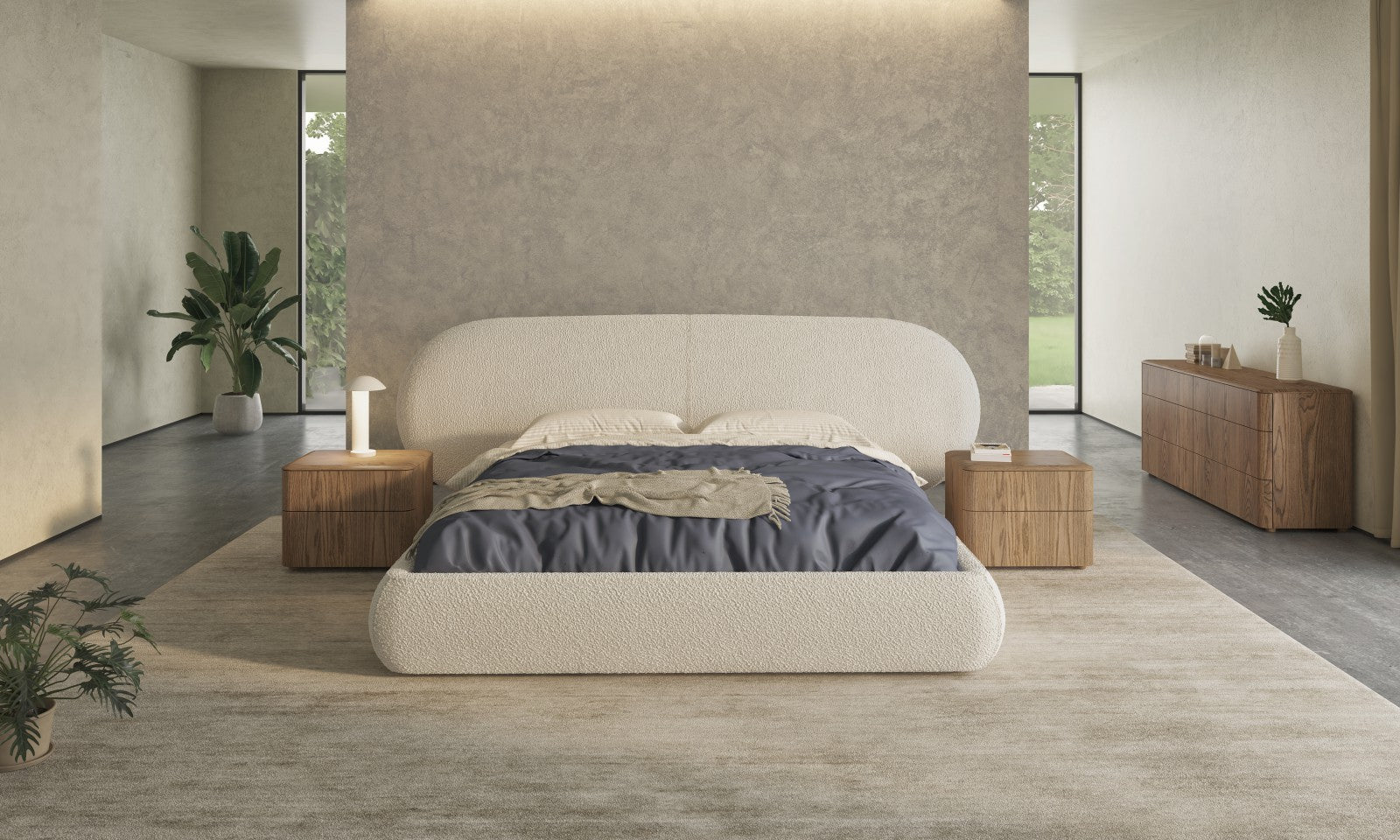 Introducing Simone Bed: The Simone Upholstered Bed by Huppe is the perfect blend of nature and modern Italian design, offering both luxury and comfort in your bedroom. As the centerpiece of the Simone collection, this bed is fully upholstered with generously padded structures, ensuring an inviting and relaxing environment. The soft, luxurious upholstery exudes elegance while maintaining a natural, soothing aesthetic, ideal for any modern bedroom setting. For added functionality, the bed also features an option for shelves attached to the headboard, providing a practical and stylish solution for your nighttime essentials.