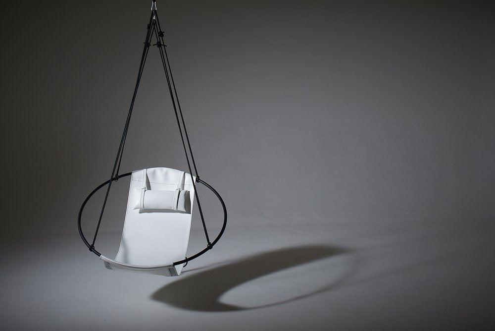 SLING Chair in White Leather Hanging Chairs Studio Stirling