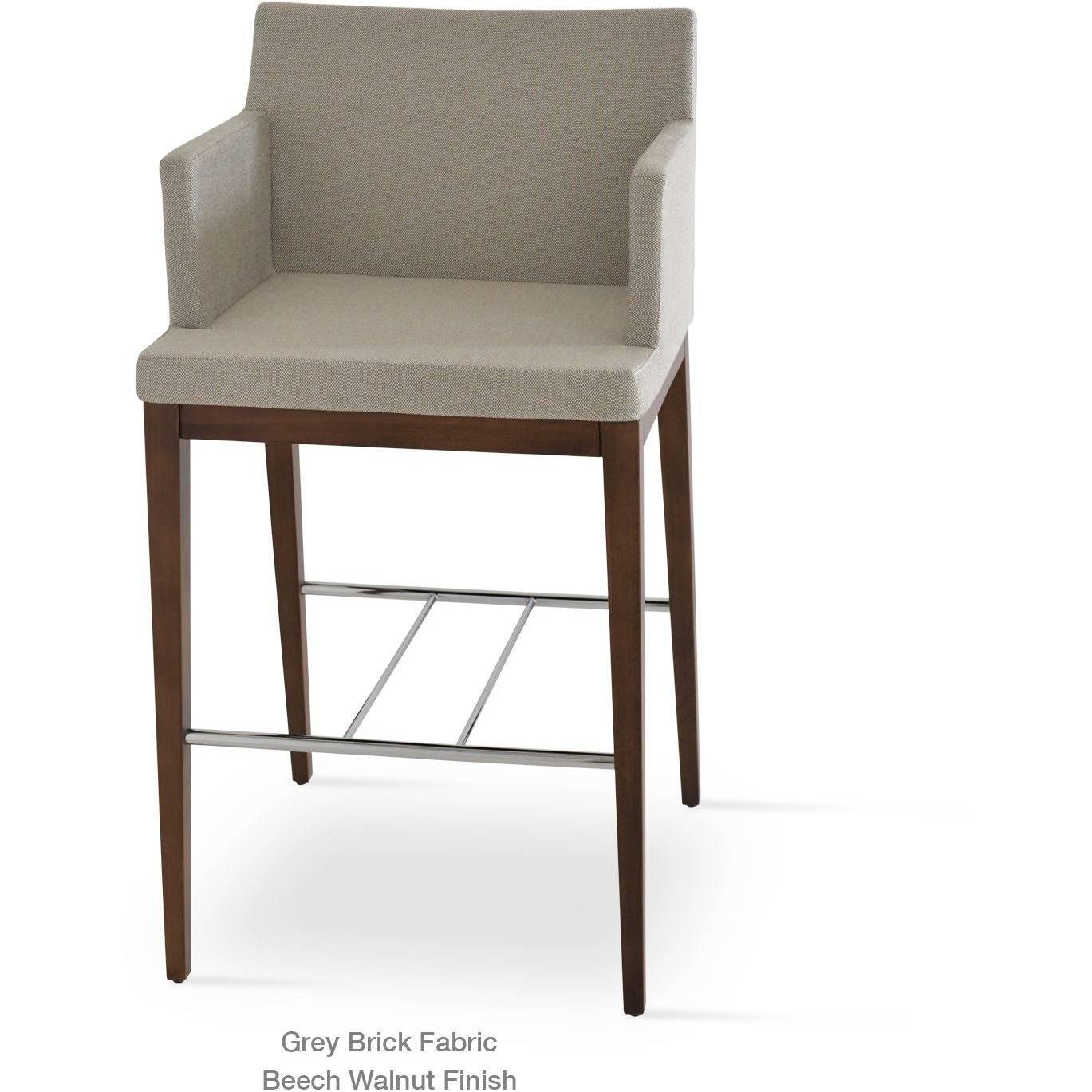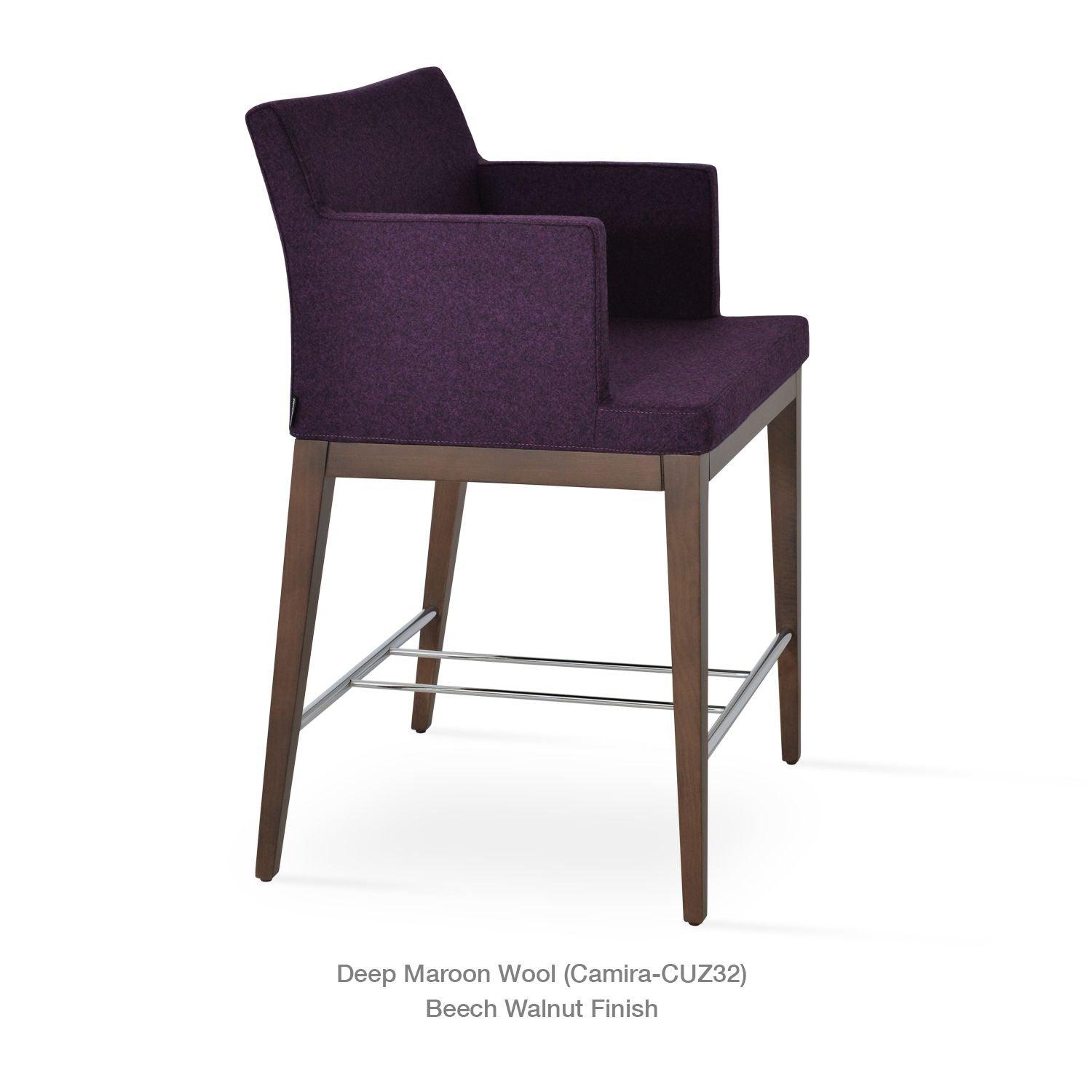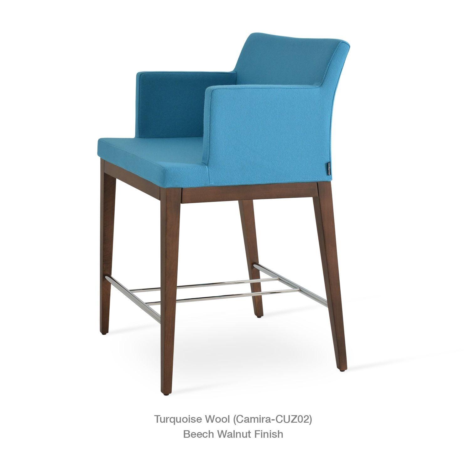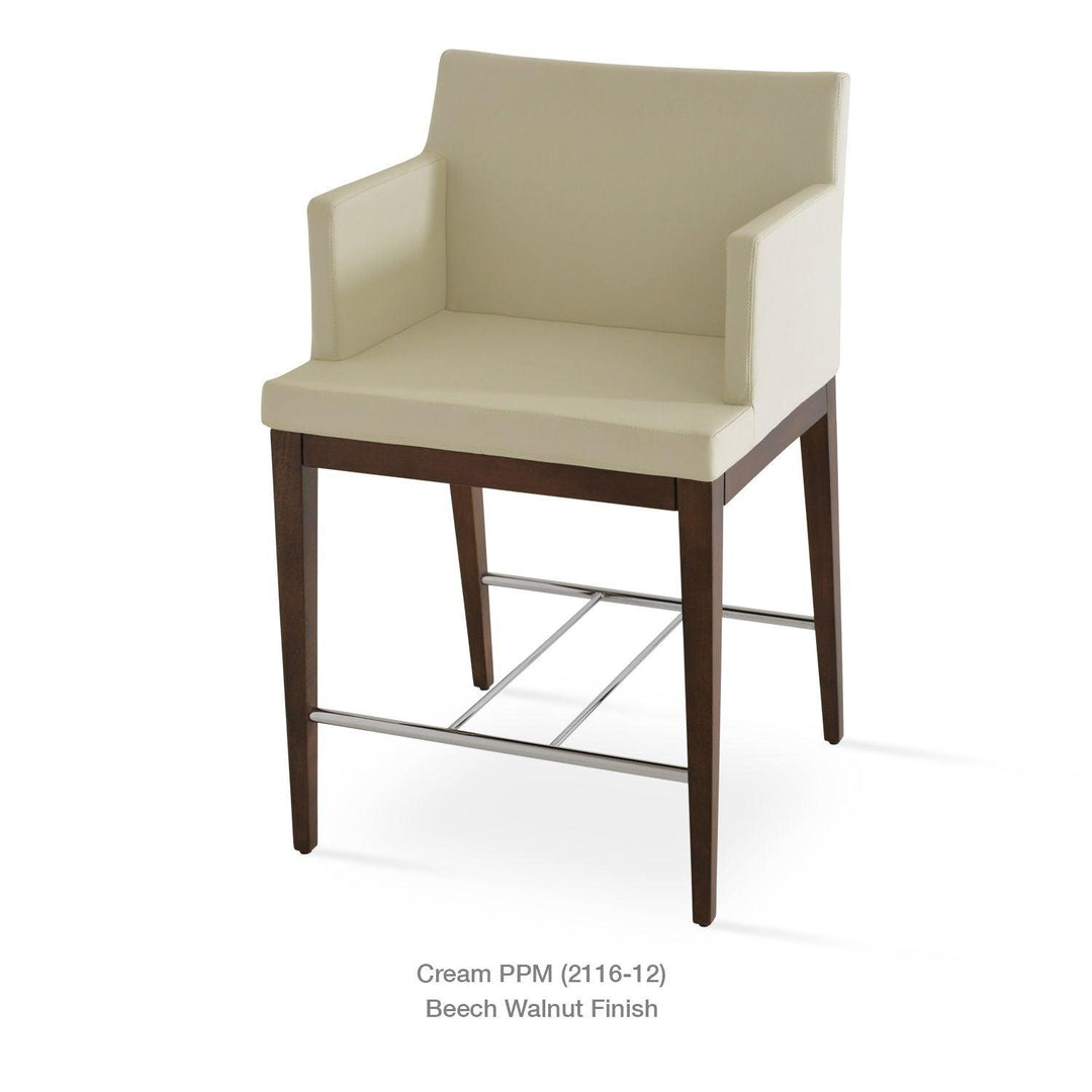 The Soho Wood Stool is a contemporary bar and counter stool with a comfortable upholstered seat and backrest. The seat has a steel structure with “S” shape springs for extra flexibility and strength. This steel frame is molded by injecting polyurethane foam. The Soho seat is upholstered with a removable velcro-enclosed leather, PPM, or wool fabric slip cover. The stool is suitable for both residential and commercial use.