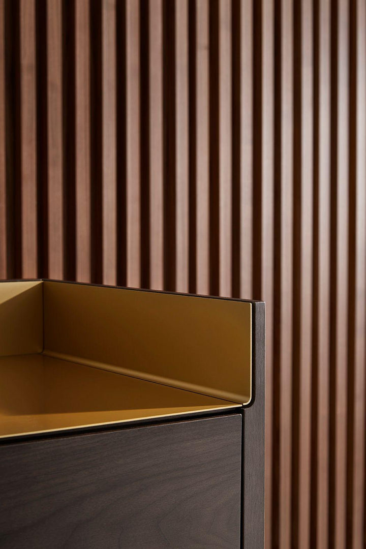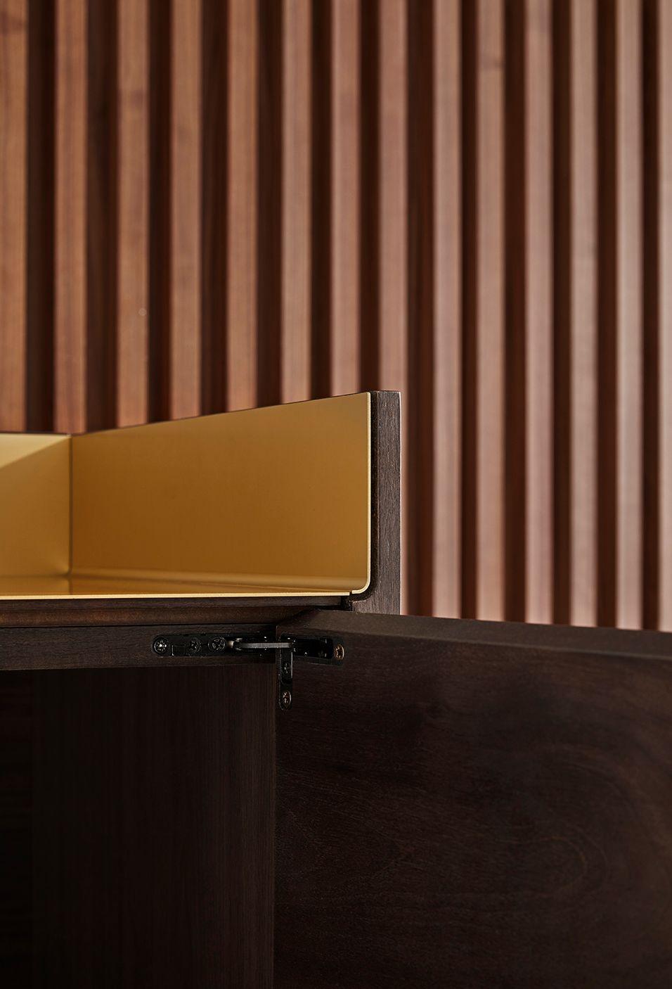 Designed by Mario Ruiz, the Stockholm 2 Door Sideboard is a compact yet elegant storage solution that beautifully blends form and function. Its clean lines and rich oak or walnut veneer present a minimalist aesthetic that can seamlessly integrate into any room. The standout feature of this sideboard is its distinctive metallic top, available in a variety of anodized aluminum hues, that adds a touch of sleek sophistication.