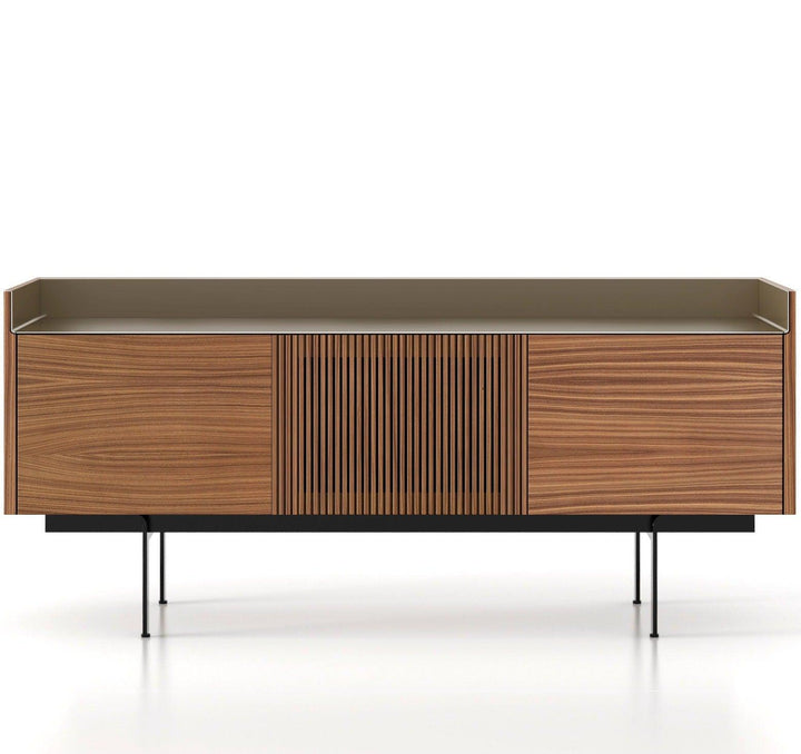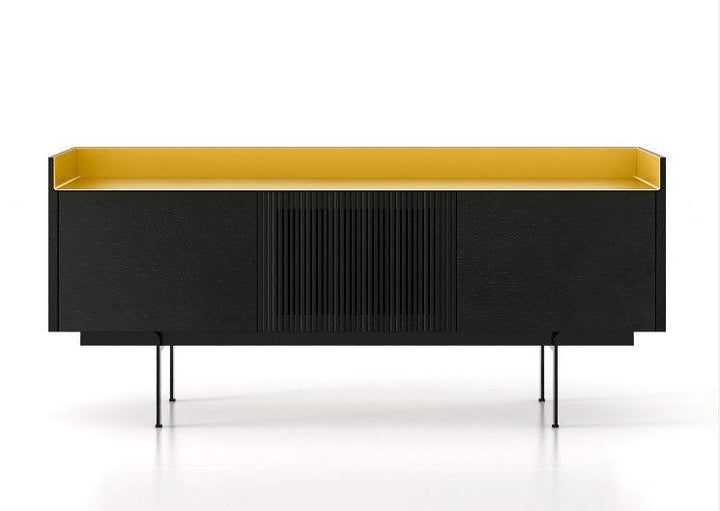 The sideboard is constructed with careful attention to both aesthetics and functionality. It boasts three expansive doors, providing sufficient storage space for your essentials. Intricate design elements, including the anodized aluminum top and sides, offer a practical and visual function. Available in multiple finishes, the Stockholm Technic 3-Door Sideboard can blend into various interiors, making it a necessary addition to your home or office.