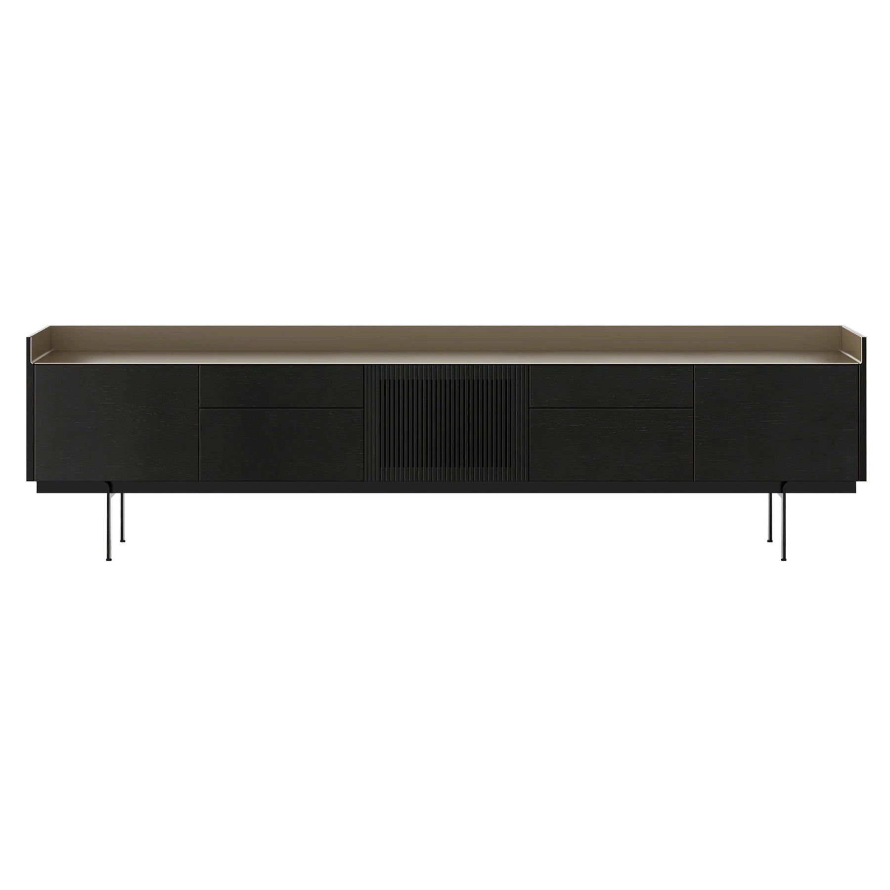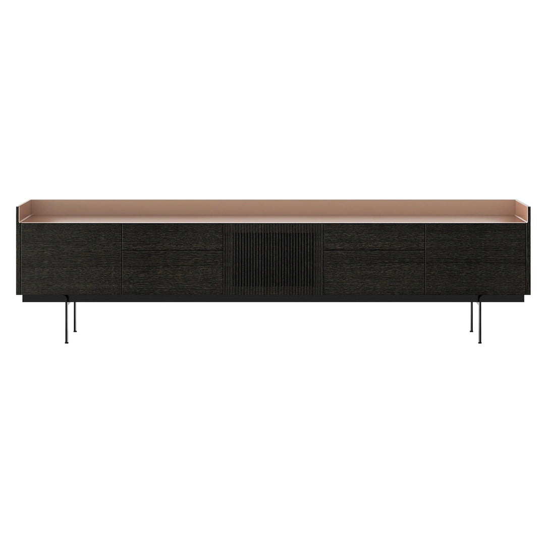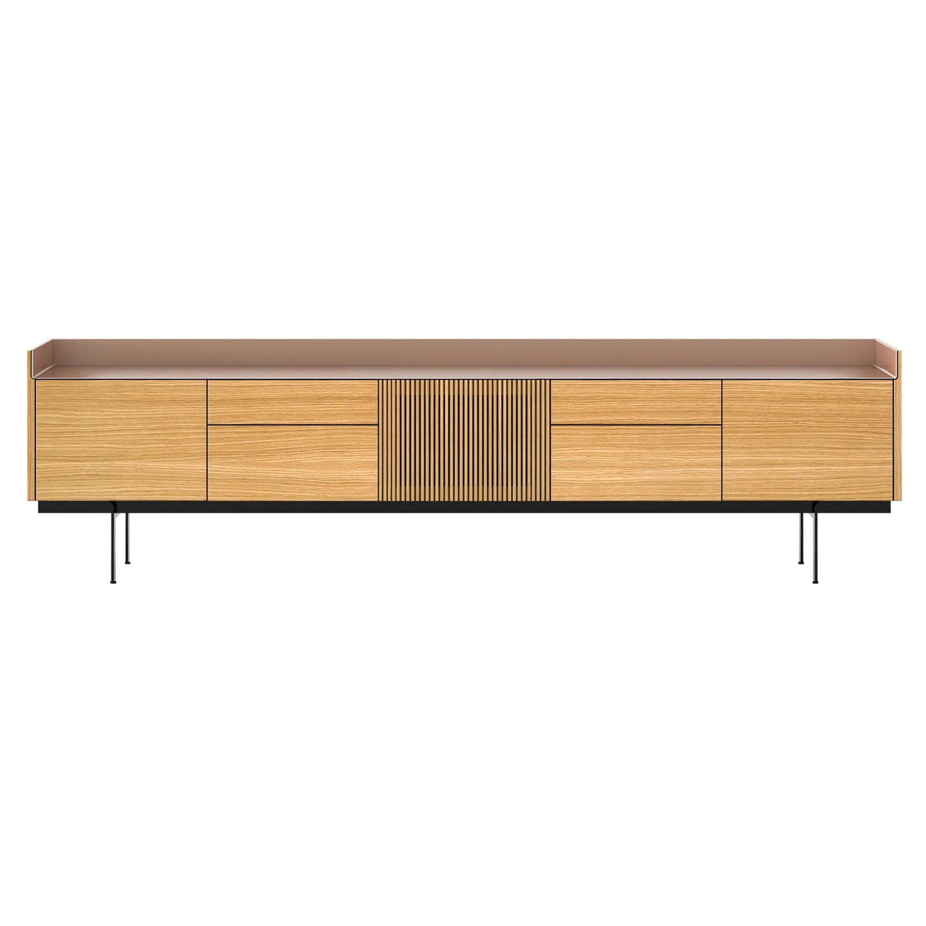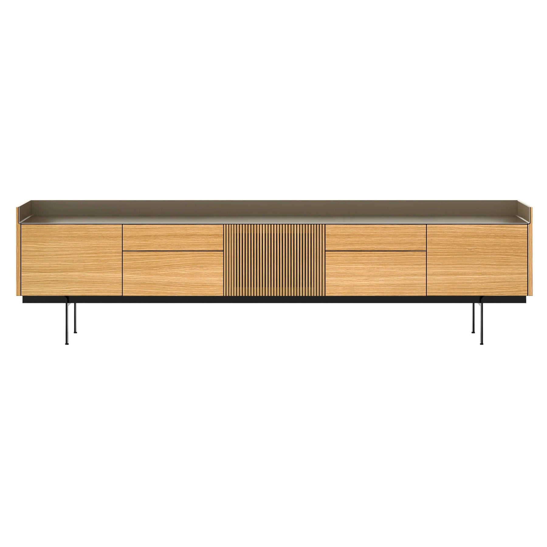 Delivering a new standard in modern furniture design, the Stockholm Technic Sideboard: STH505 is a notable addition to Punt's Stockholm collection. Mario Ruiz's design features five uniform storage sections, each equipped with slatted TV doors. Catering to your technological needs, the sideboard provides full cable management and back plug access. This piece stands out with its anodized aluminum top surface, elegantly contrasting with the sideboard's oak or walnut structure.