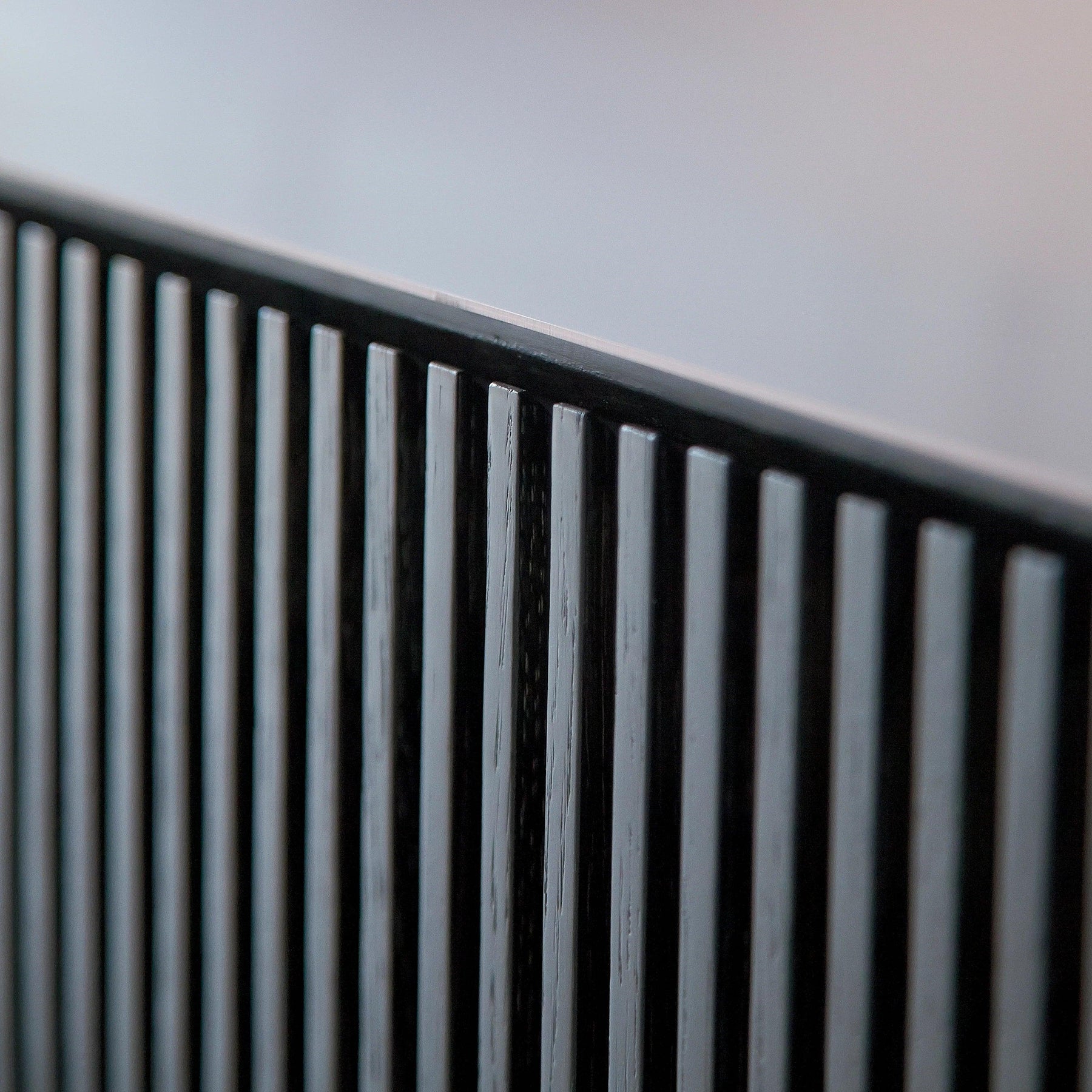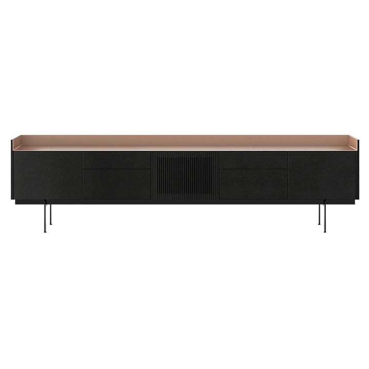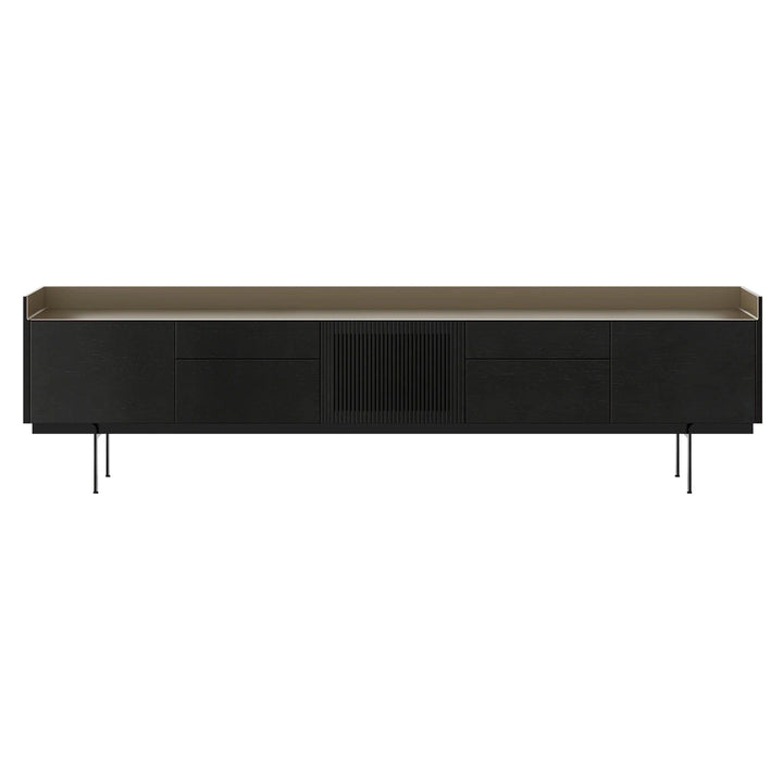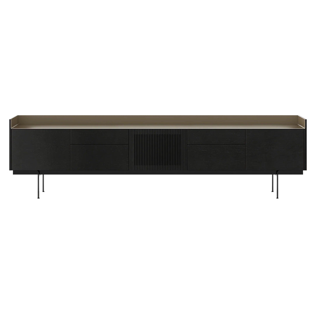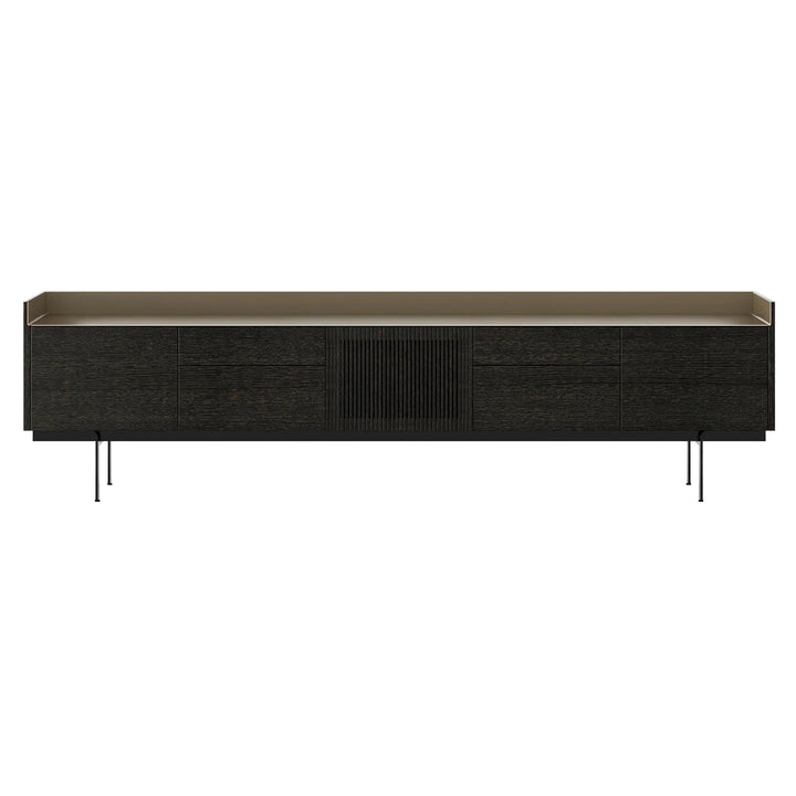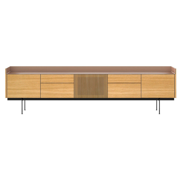 Delivering a new standard in modern furniture design, the Stockholm Technic Sideboard: STH505 is a notable addition to Punt's Stockholm collection. Mario Ruiz's design features five uniform storage sections, each equipped with slatted TV doors. Catering to your technological needs, the sideboard provides full cable management and back plug access. This piece stands out with its anodized aluminum top surface, elegantly contrasting with the sideboard's oak or walnut structure.