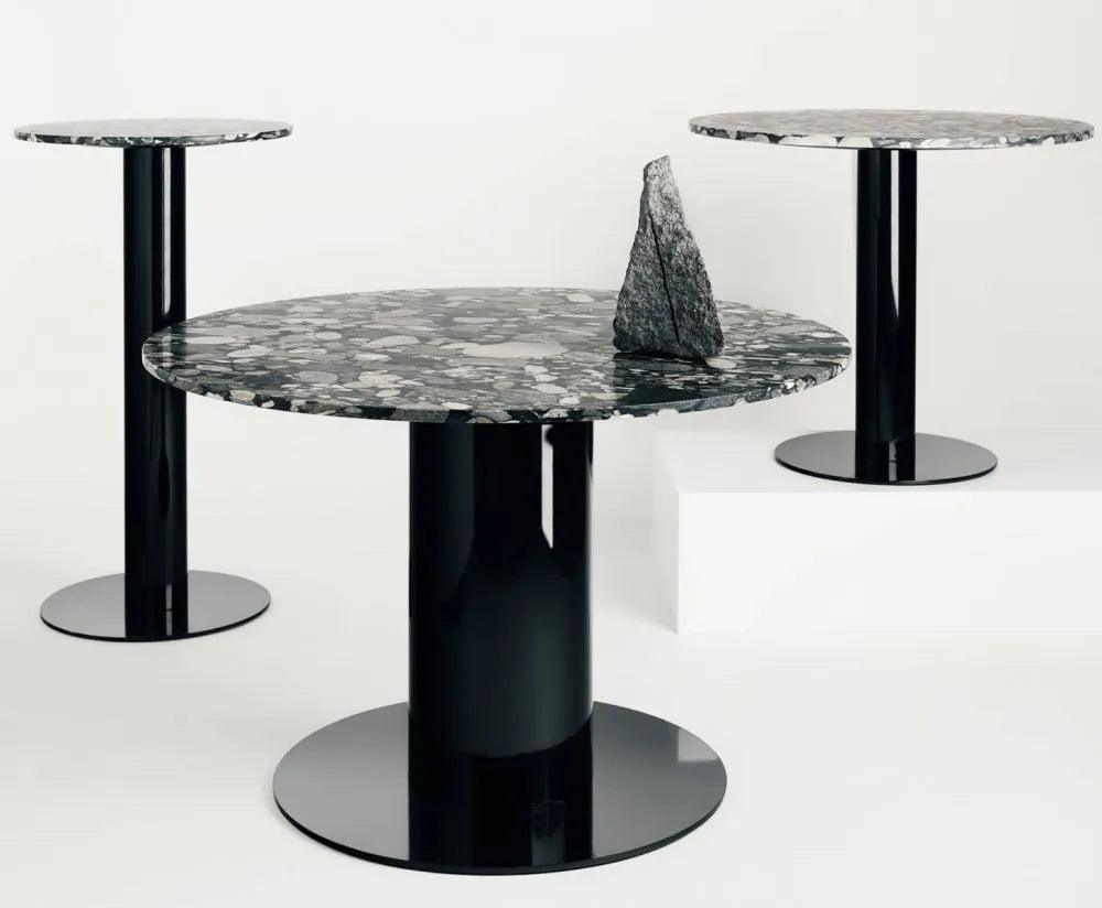Introduce a sense of opulence to your space with the Tibe High Table Black Pebble by Tom Dixon. This versatile and elegant bar table is designed with brass or black plated tubing in a refined black finish, resulting in a piece that combines modern elegance with timeless appeal. Its standout feature, a round tabletop, is crafted from colorful marble sourced from the Shandong and Fujian provinces . The captivating patterns present on the natural marble surface are the result of millions of years of crustal movement changes due to lava extrusion, adding a unique touch of nature's artistry to your space.