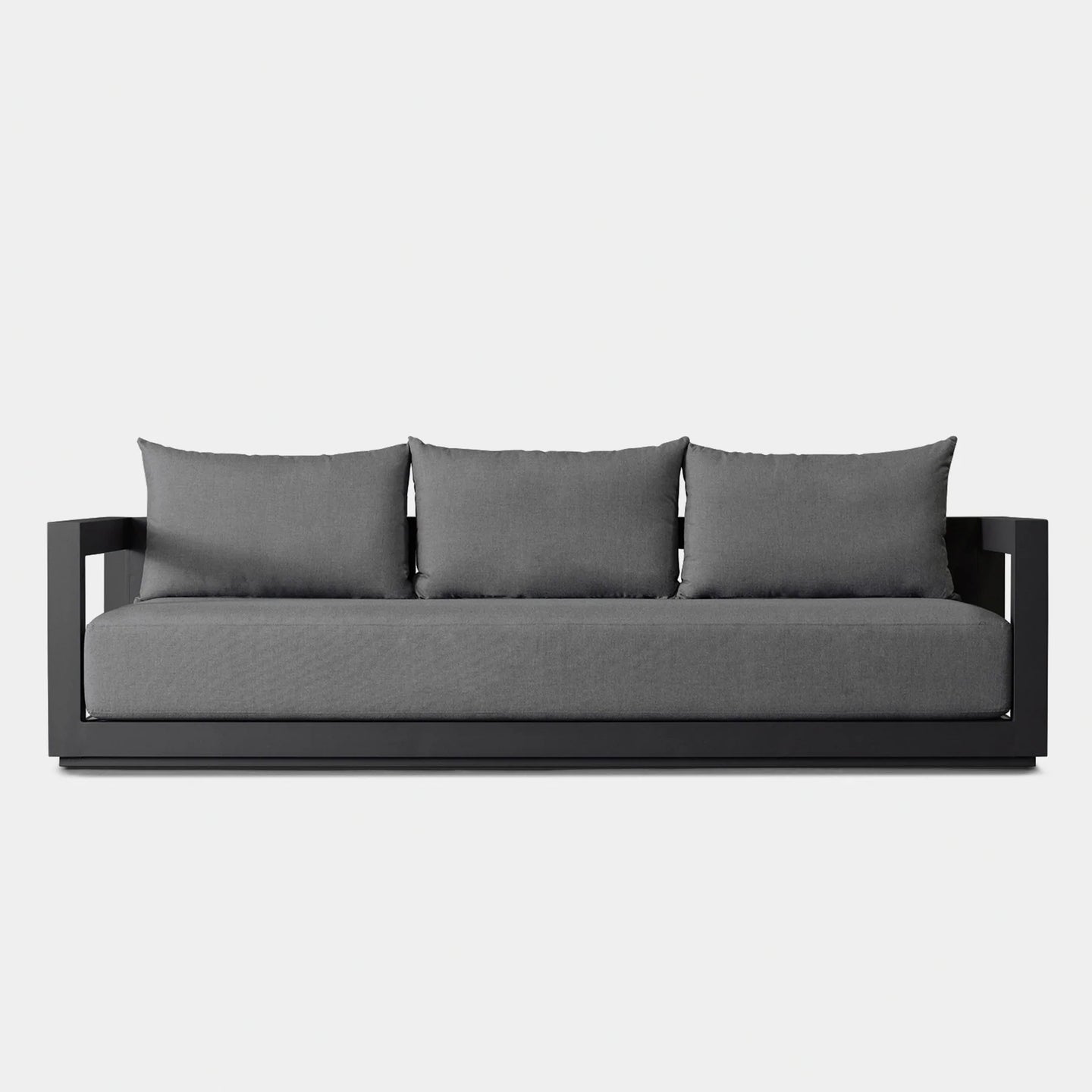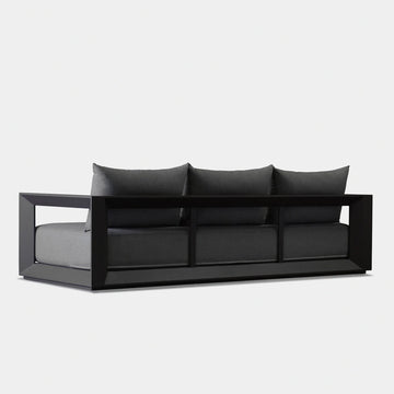 The Vaucluse collection explores simple geometries with angular details in a contemporary study of triangles. Surprising and subtle, the Vaucluse 3 Seat Sofa is the perfect escape — lounge on a deep all–weather bench cushion supported by a Batyline sling suspension on a powder-coated extruded aluminum frame. Outwardly square geometries angle inward in triangular form, creating a dynamic play on shapes that defines the design. This streamlined piece is equally versatile, bringing a sense of balance to any space.