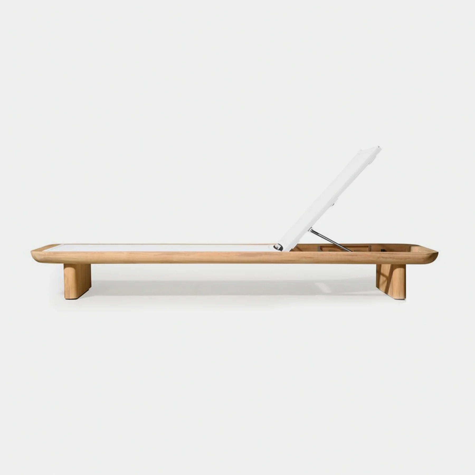 Our Victoria Teak collection balances sculptural curves and right angles for true simplicity of proportion. The Victoria Sun Lounge is poolside relaxation — lounge on an all–weather Batyline mesh sling suspension for comfort and total adjustability, with no cushion required (or add one if desired). With a striking rounded frame in solid Indonesian teak echoed by the rounded edges of the plank legs, this contemporary piece brings harmony to various spaces.