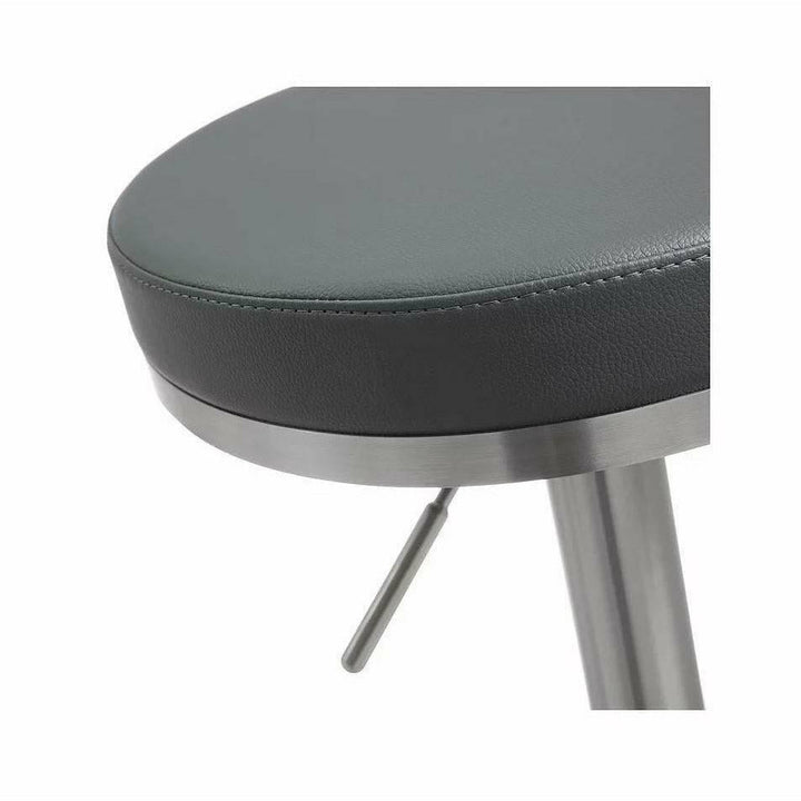 The Victory Stainless Barstool brings a big presence on a small scale. Its comfy cushion is upholstered in Eco Leather and elegantly matched with a thin strip of stainless steel at the bottom of the seat cushion.