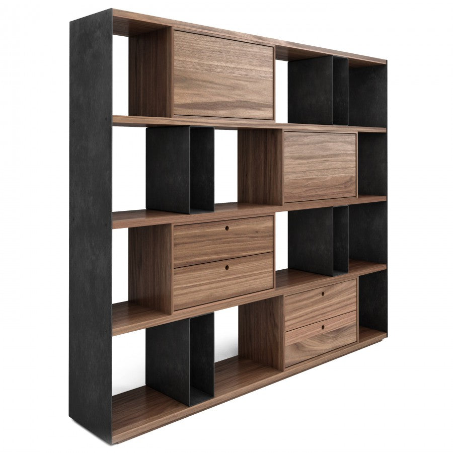 The Wallride Shelf / Bookcase by Huppé is a bold and functional storage solution that combines minimalist design with industrial elegance. Crafted with wood and steel, this large bookshelf offers a mix of open and closed storage spaces, perfect for displaying books, decor, and organizing essentials. The contrast between natural wood and sleek steel creates a contemporary aesthetic, making it an ideal choice for modern living rooms, home offices, or loft-style spaces.