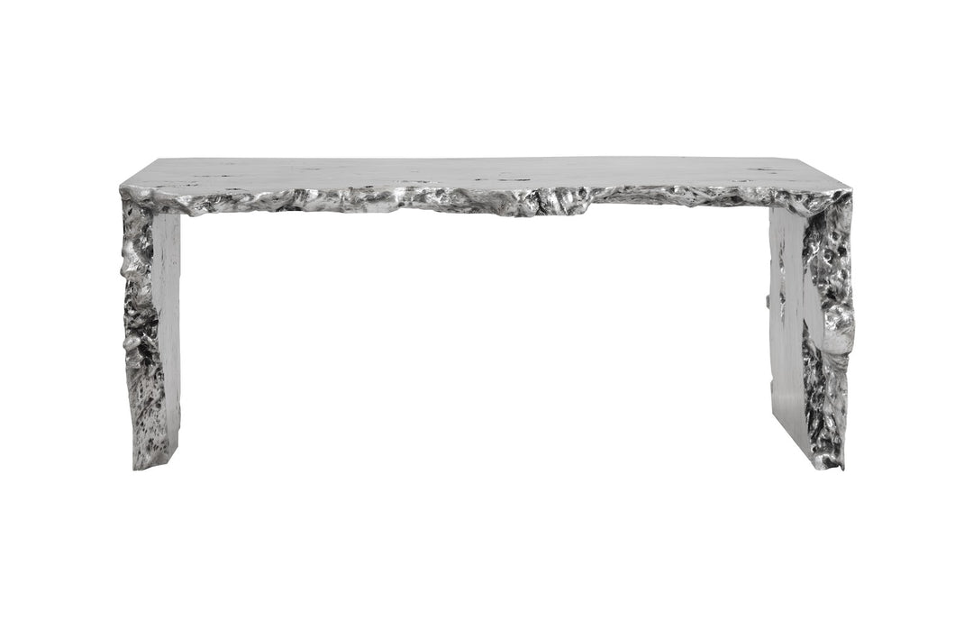 The Waterfall Desk, Silver Leaf by Phillips Collection is a stunning 21st-century design that combines the flowing elegance of its form with a luxurious silver-leaf finish. Its swirling edges introduce texture and warmth to your space, while the brilliant metallic sheen adds an element of modern sophistication. This desk is the perfect centerpiece for any contemporary workspace, offering both beauty and practicality.