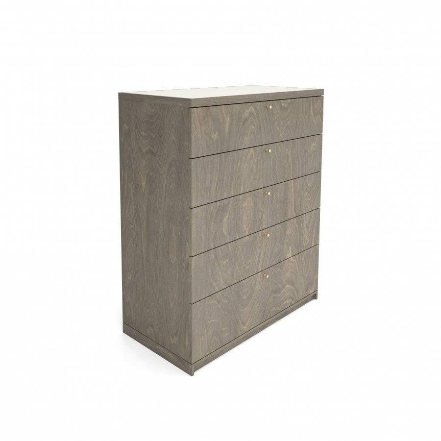 The Wellington Chest - 5 Drawer by Huppe is the epitome of modern elegance and practical functionality. Meticulously crafted from solid North American birch wood, this chest offers robust durability and a sleek aesthetic. Each of the five drawers features full-extension glides that ensure smooth operation and easy access, while the soft-closing mechanisms provide a silent and gentle closure. The modern, clean-lined design of the Wellington Chest enhances any bedroom setting, offering both visual appeal and ample storage.