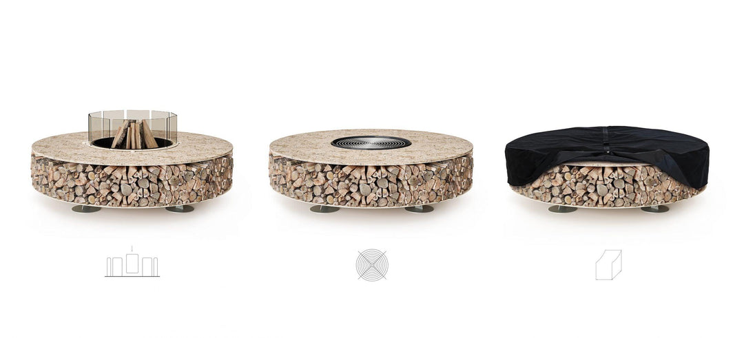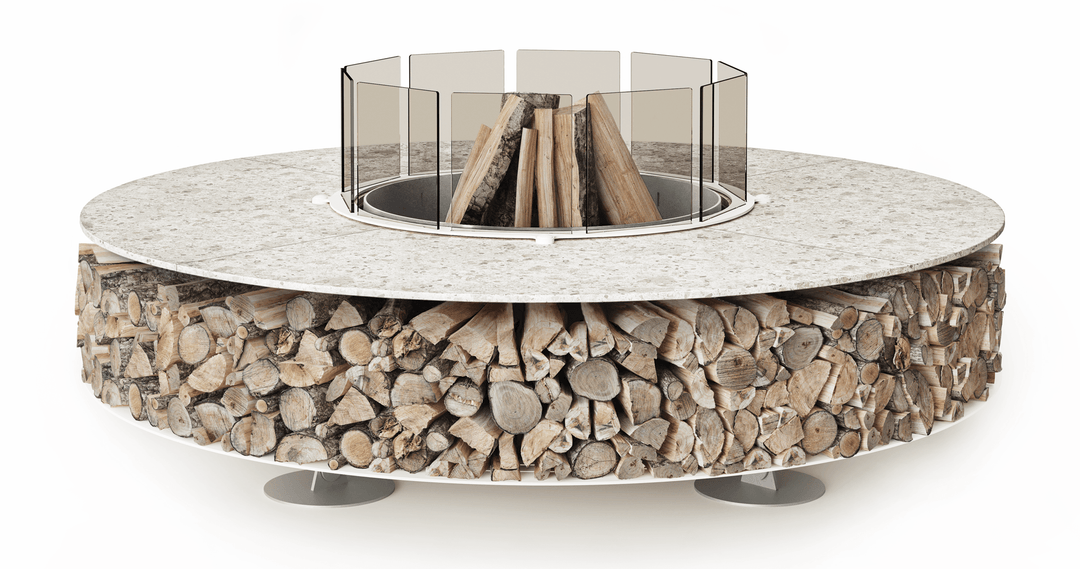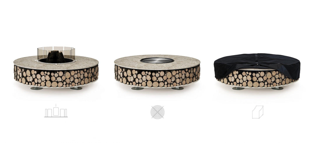 The ZERO KERAMIK FIRE PIT by AK47 Design is an exceptional outdoor wood-burning fireplace that doubles as a cozy refuge. Ideal for enjoying the warmth of the fire, this unique fire pit transitions from the lively dance of flames to the tranquil glow of embers, providing comfort and a sweet warmth that comforts your guests. Zero’s design artfully blends functionality with contemporary style, creating an outdoor fireplace that is not only a source of warmth but also a significant design element for any outdoor space.