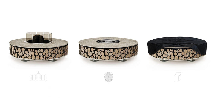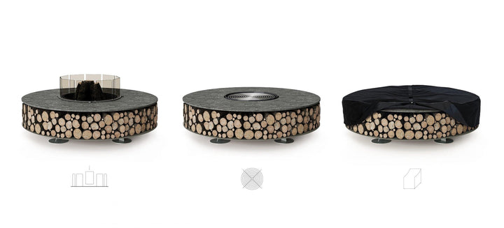 Versatile Functionality: Not just a fire pit, but also includes wood storage, doubling as a useful surface when not in use. Robust and Artistic Design: Simple yet strong in character, designed to present fire with a modern aesthetic. Timeless Appeal: A unique object that combines functionality with a strong visual presence.