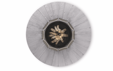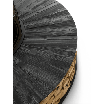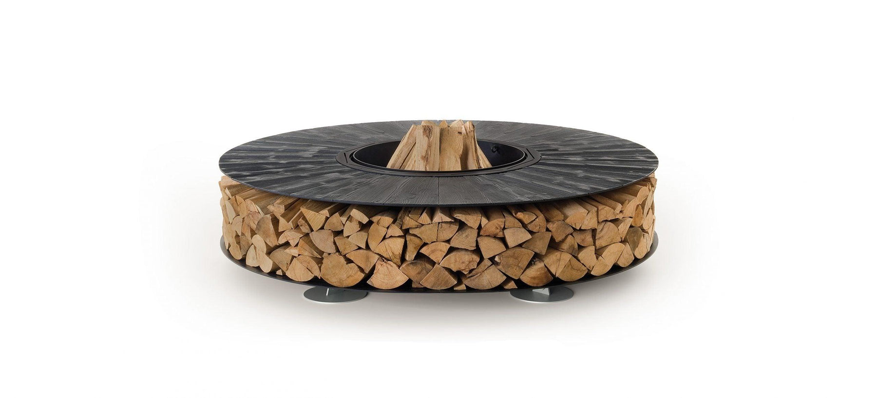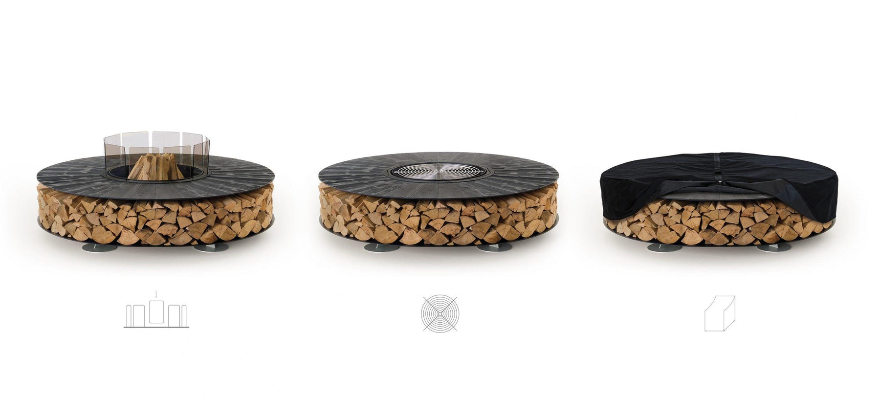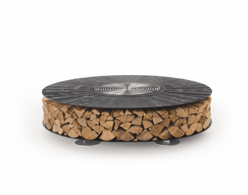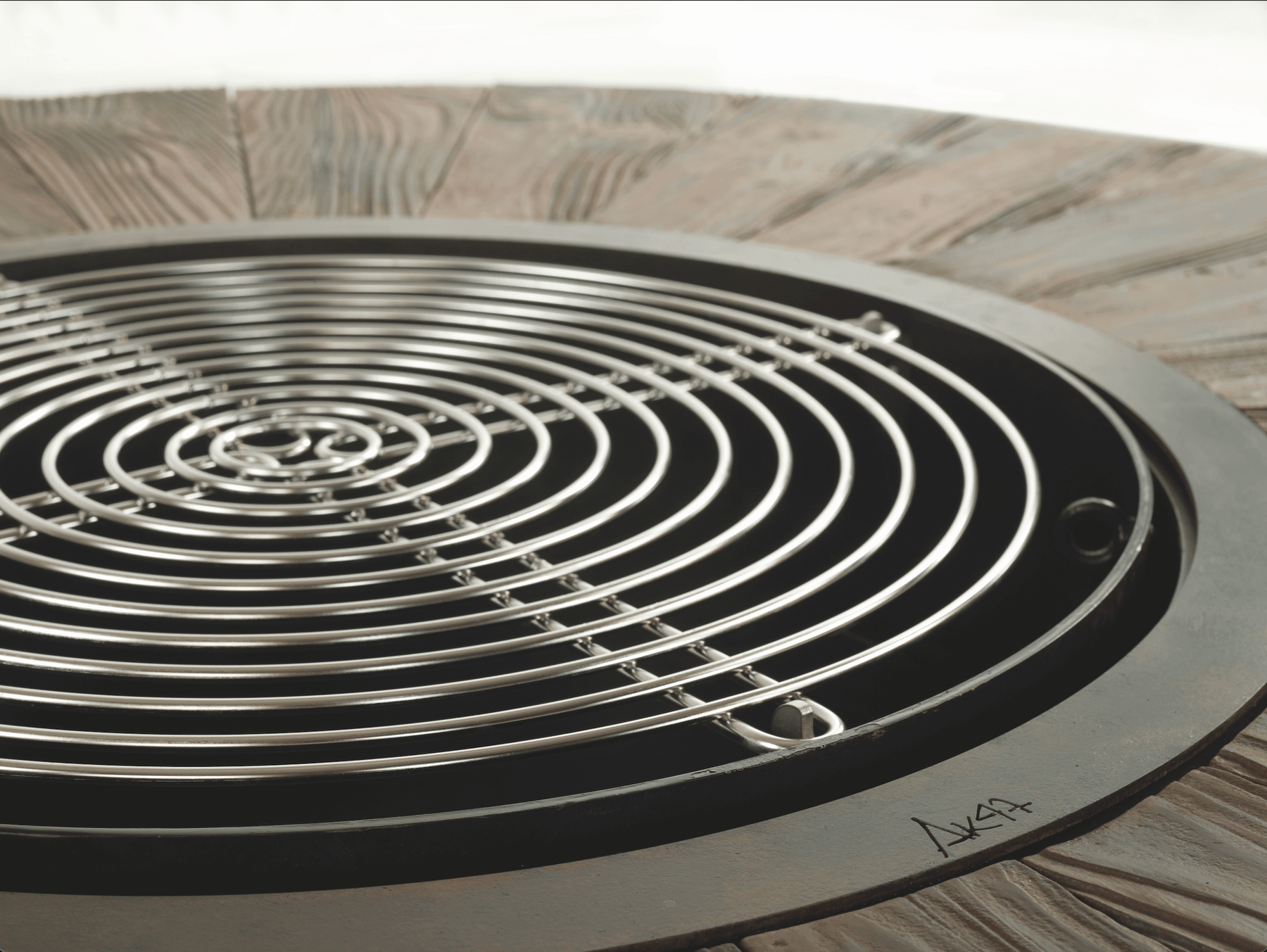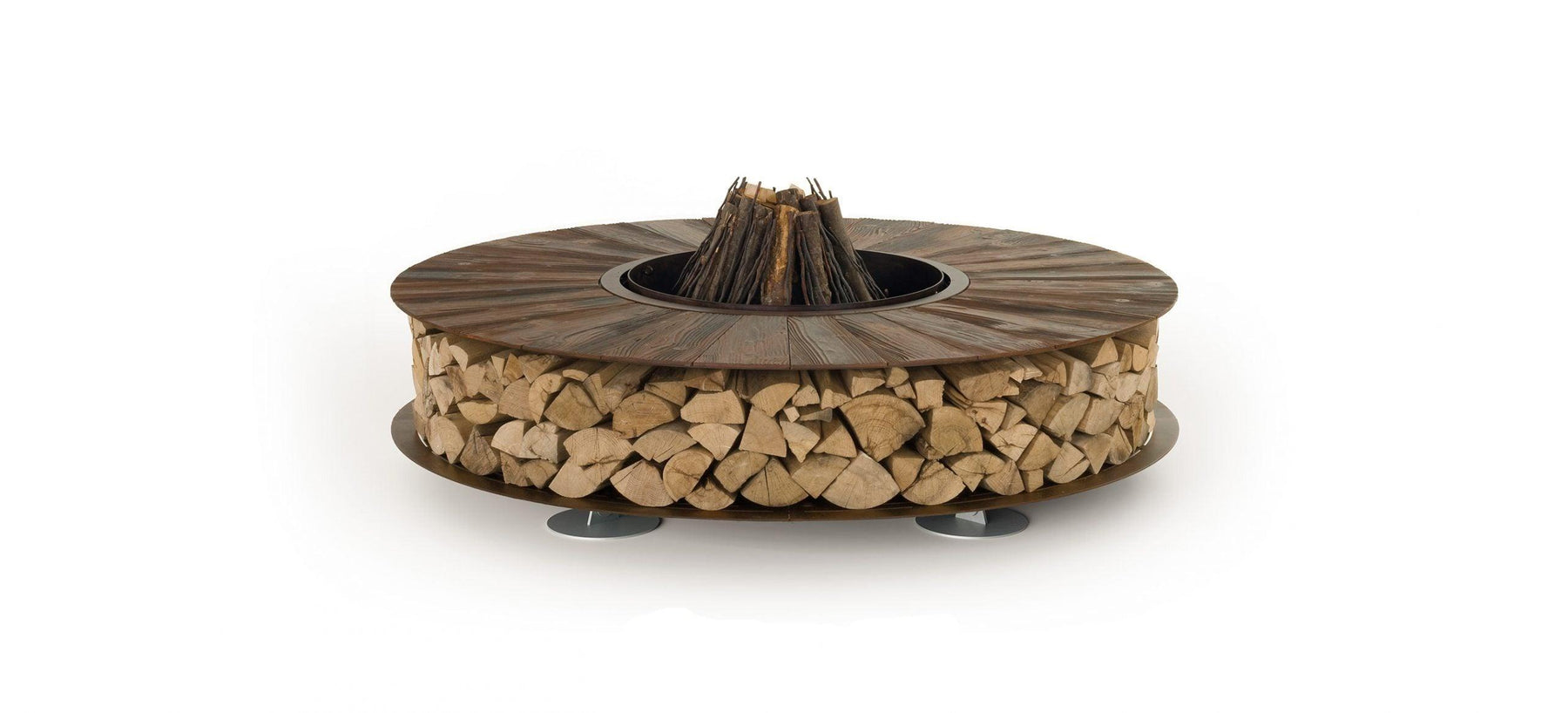 Introducing the ZERO Texture Wood Fire Pit by AK47 Design: It's more than a fire pit; it's a canvas where fire paints mesmerizing tales, weaving memories with every flicker and glow. Positioned amidst nature's tranquility or the opulence of outdoor patios, Zero stands as a magnetic core, drawing everyone closer. Gatherings around Zero become occasions marked by laughter, stories, and the enchanting dance of flames. From gardens to terraces and luxury hotel lounges, Zero defines space with contemporary elegance. Crafted from robust steel with an oxidized patina, it's resistant to corrosion. Galvanized steel feet ensure steadfastness against the elements. Every detail is meticulously addressed, from a cool-to-touch surface to a protective steel cover. For culinary enthusiasts, the optional stainless steel grill kit (sold separately) transforms Zero into a gourmet's delight, ready for outdoor cooking.